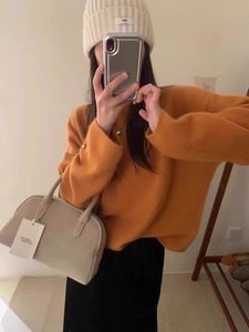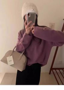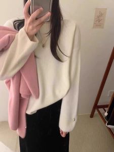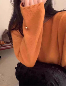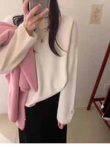 2025新款女式100%纯羊毛衫圆领长袖套头毛衣宽松慵懒范针织衫打底