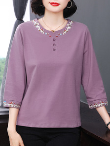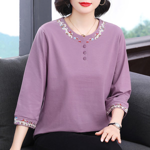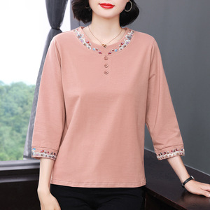 春装长袖t恤女2025新款中老年妈妈装上衣秋衣外穿时尚洋气打底衫