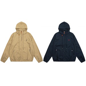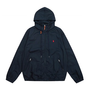 RL小马刺绣 跨境美式复古连帽抽绳薄款外套 拉链开衫轻盈夹克休闲