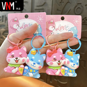 创意新款情侣柴犬钥匙扣可爱包包挂件情侣钥匙链抓娃机小礼品批发