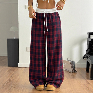 2025秋冬季跨境欧美亚马逊独立站格子休闲裤女松紧腰宽松长裤女