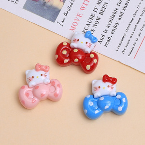 可爱蝴蝶结喵喵卡通diy饰品配件奶油胶树脂小配件发夹手工材料包