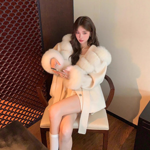 2025重磅娇宠千金高级感大狐狸毛领连帽短款100羊毛大衣毛呢外套