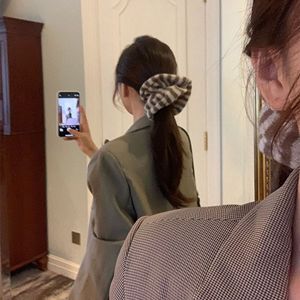 红色毛线条纹大肠发圈头绳女2025新款高端扎丸子头发绳低马尾发饰