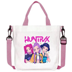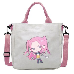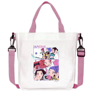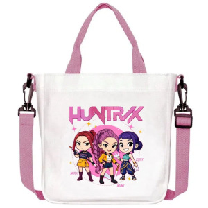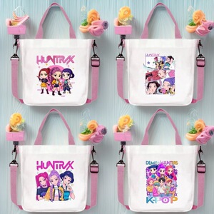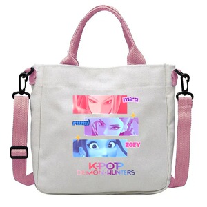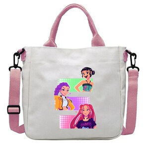 猎魔女团卡通印花新款粉色帆布手提包单肩包斜挎包