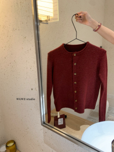 WGWE秋冬新款法式复古简约百搭显瘦减龄长袖外套针织开衫女W7382