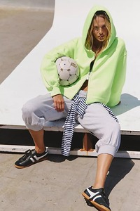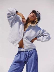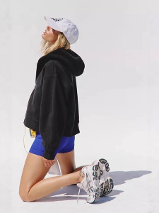 跨境2025欧美秋季新款休闲外套运动短款时尚休闲连帽卫衣女
