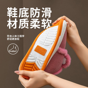 条纹棉鞋男冬室内外家居防滑保暖情侣居家用包跟软底冬款棉拖鞋女