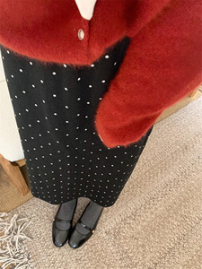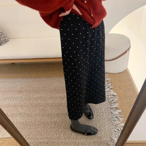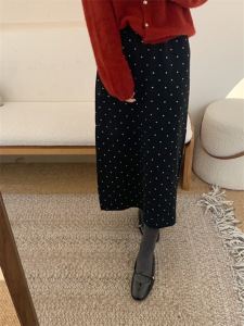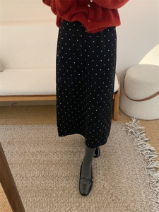 复古羊毛针织半身裙女秋冬款小个子A字高腰直筒波点包臀一步长裙