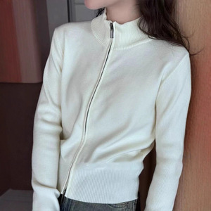 Moses Queen/魔西女王韩系双拉链立领针织开衫秋宽松短款气质上衣
