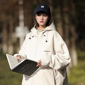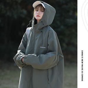 冲锋衣外套女2025秋冬宽松显瘦小个子防水冲锋衣高领连帽套装潮