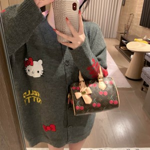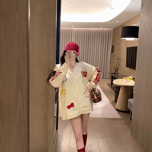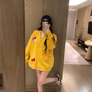 2025秋冬季女装新款时尚甜美可爱字母猫咪宽松长袖毛衣大开衫外套