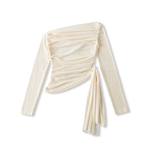 AP25510-25夏季新款 欧美风辣妹纯欲网纱飘带斜肩露肩长袖修身T恤