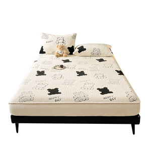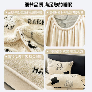 2025新款亲肤牛奶绒提花小熊单件床笠学生宿舍床罩加厚舒适防滑