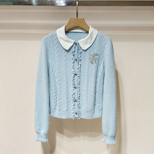 1件起批2025秋女装 娃娃领减龄单排扣长袖针织开衫外套S250783