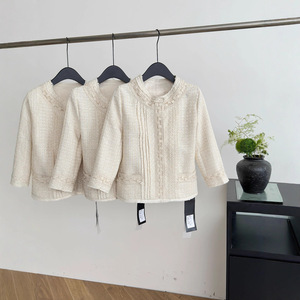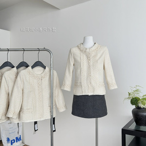 粗花呢小香风外套女秋季感圆领小个子复古短款上衣2025秋季新款