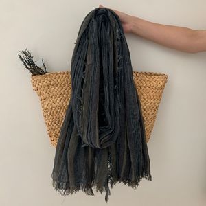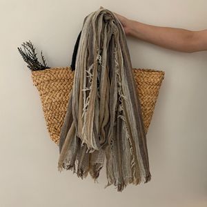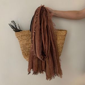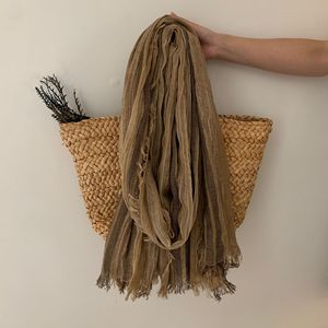 出口日单2025新款文艺复古素色扎染棉麻围巾女秋冬新款柔棉丝巾披
