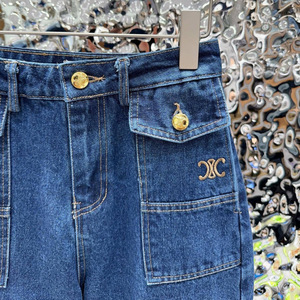 ce25秋冬新款时髦复古吸睛凯旋门刺绣口袋牛仔直筒裤