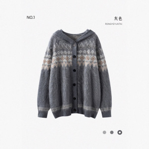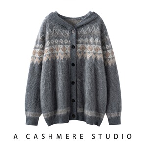 100%纯山羊绒拉绒重工康赛妮A类羊绒羊绒衫重工提花女士拉绒开衫