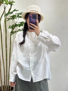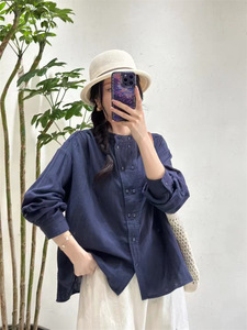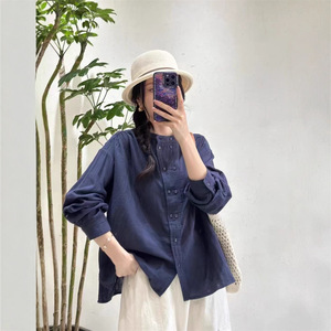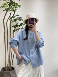 新款双层棉双排扣内包缝 休闲宽松长袖小立领衬衫女
