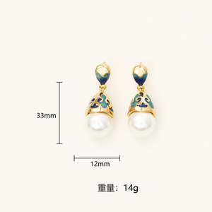珐琅滴釉水滴珍珠耳环(S925纯银针)