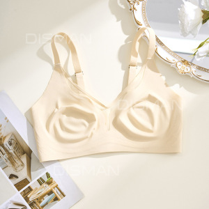 网纱拼接大码凉感无痕透气无钢圈文胸女士大胸显小超薄内衣女夏季