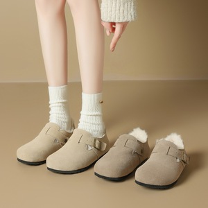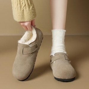 ZHR则则厚底加绒保暖勃肯鞋2025冬季新款休闲平底毛毛鞋一脚蹬女