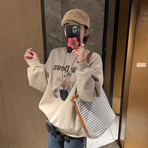 韩国东大门复古风小熊汽车印花长袖卫衣秋季新款女装套头圆领上衣