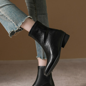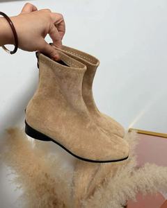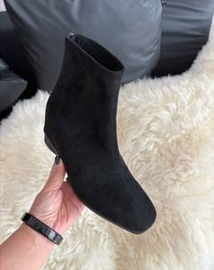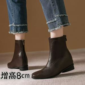 内增高~现货新款2025复古方头绒面百搭靴粗跟增高瘦瘦中筒靴女