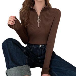 洋气半高领拉链打底衫时尚修身显瘦上衣女内搭气质秋冬针织衫毛衣