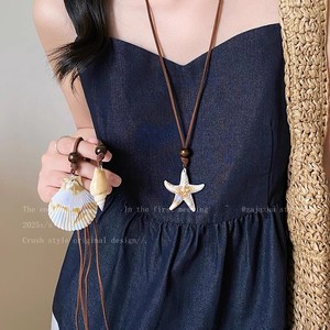 2026新款森系复古海星吊坠项链慵懒风文艺皮绳颈链海洋风锁骨链