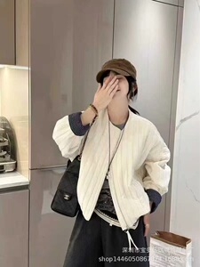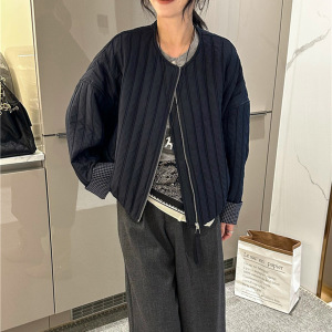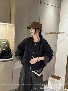 琪镌绘制撞色拼接圆领开衫短外套女秋季新款宽松显瘦薄棉夹克外套
