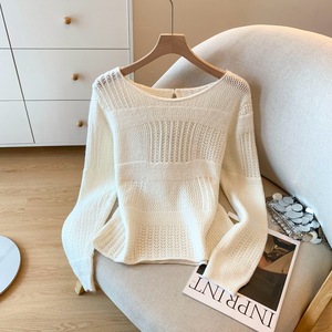 广州十三行高货爆款~早秋镂空针织衫女薄款毛衣长袖宽松外套秋季