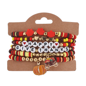 欧美风格 感恩节主题软陶手链 枫叶松鼠火鸡等感恩节主题元素手链