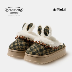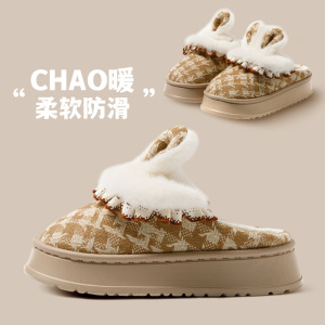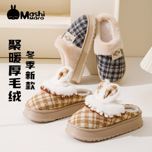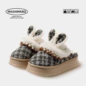 拖鞋流氓兔毛毛女士冬季小香风室内家居保暖加绒防滑男冬天棉拖鞋