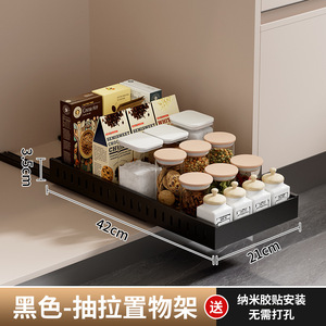厨房抽拉式锅具置物架家用橱柜碗具储物架多功能调味料收纳架拉篮