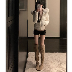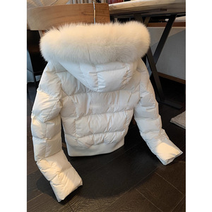 白鸭绒收腰显瘦短款羽绒服女2025冬季新款显脸小可拆卸大毛领外套