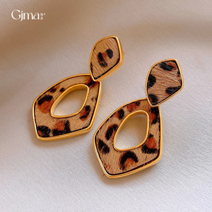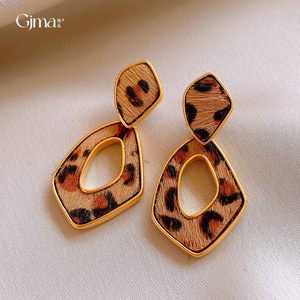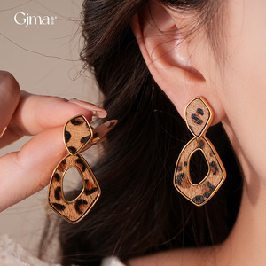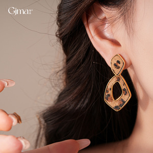 真金电镀豹纹复古几何镂空耳环轻奢高级感耳钉时尚耳饰设计感小众