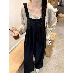 杏色上衣慵懒风背带裤女秋季百搭时尚休闲连体裤阔腿长裤两件套女