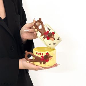 可爱苹果腊肠狗家用喝水杯女生高颜值陶瓷情侣马克杯叠杯伴手礼