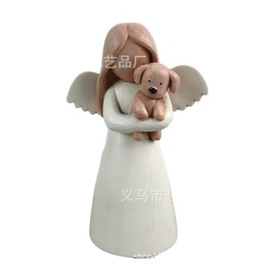 跨境热销款 仿木雕天使树脂摆件 办公室卧室立体创意装饰品批发