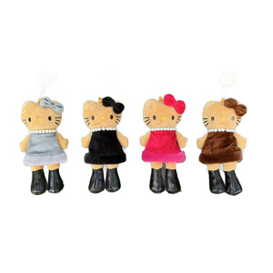 日系三丽鸥NIC豹纹黑皮爱心扣长腿kitty包挂件毛绒凯蒂猫kt钥匙扣