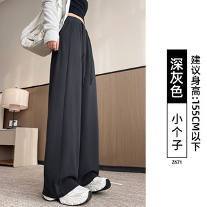 白色休闲运动裤女2025新款秋季小个子美式宽松卫裤窄版直筒阔腿裤