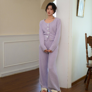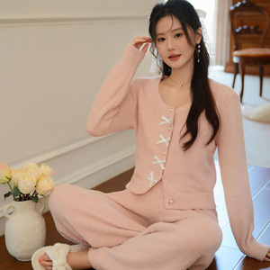 法式睡衣女新款2025秋冬双面绒加绒加厚保暖圆领开衫家居服可外穿