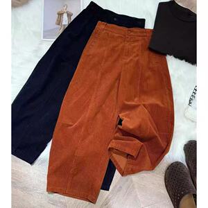深圳2025新款南油女装欧货设计感高腰显瘦灯芯绒弯刀香蕉阔腿裤女