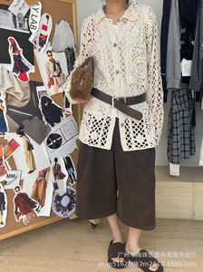 新款法式钩花镂空针织衫外套女秋季松驰庸懒中长款单排扣开衫上衣