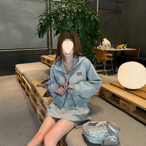 mm家5ss秋冬新款格子拼接套装假两件设计拼色卫衣套装+半裙