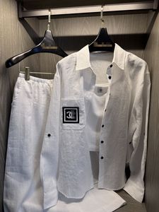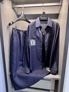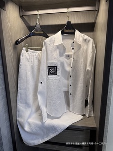 亚麻字母长袖薄款衬衫半身裙套装女2025夏翻领衬衣裙子防晒两件套