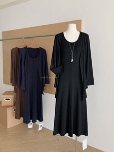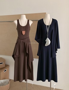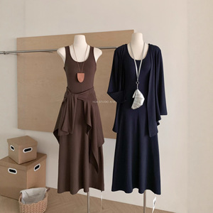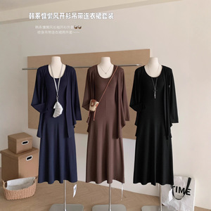 韩系纯欲吊带连衣裙女秋季新款显瘦纸片人针织背心长裙两件套开衫