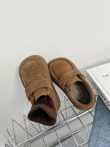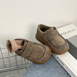 儿童磨砂反绒复古风皮鞋美拉德2025秋冬季男女童百搭二棉加绒单鞋